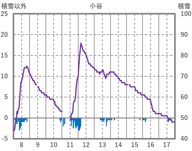 | 日 | 時 | 気温 | 降水 | 風向/風速 | 日照 | 積雪 | 降雪 |