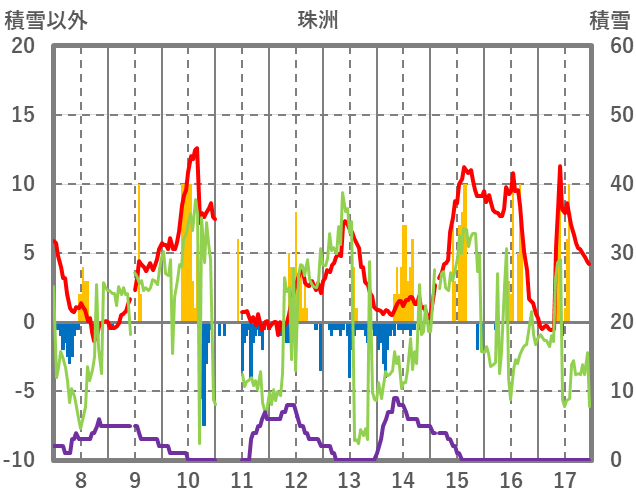 | 日 | 時 | 気温 | 降水 | 風向/風速 | 日照 | 積雪 | 降雪 |