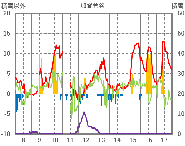 | 日 | 時 | 気温 | 降水 | 風向/風速 | 日照 | 積雪 | 降雪 |