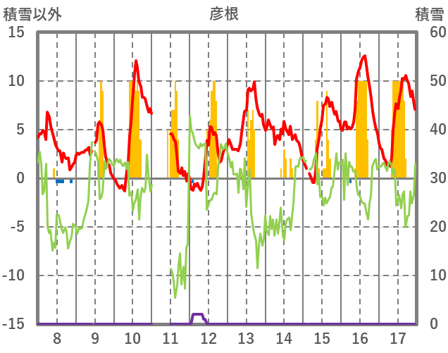 | 日 | 時 | 気温 | 降水 | 風向/風速 | 日照 | 積雪 | 降雪 |