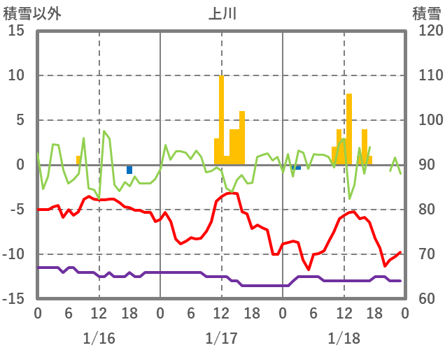 | 日 | 時 | 気温 | 降水 | 風向/風速 | 日照 | 積雪 | 降雪 |
