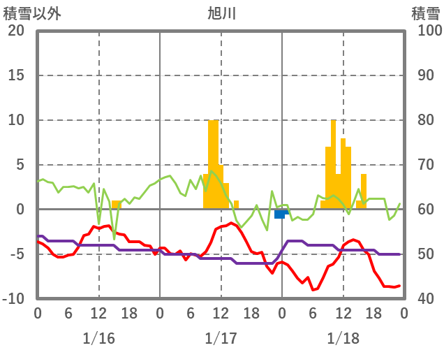 | 日 | 時 | 気温 | 降水 | 風向/風速 | 日照 | 積雪 | 降雪 |