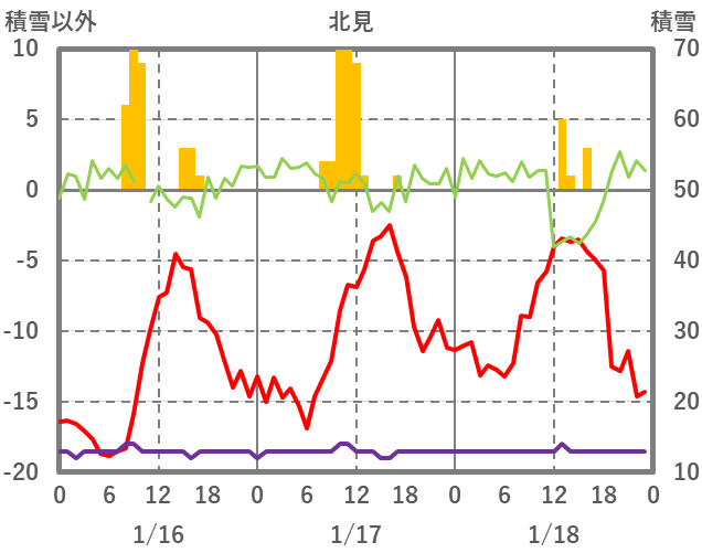 | 日 | 時 | 気温 | 降水 | 風向/風速 | 日照 | 積雪 | 降雪 |