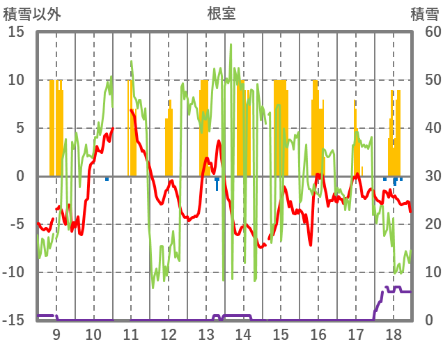 | 日 | 時 | 気温 | 降水 | 風向/風速 | 日照 | 積雪 | 降雪 |