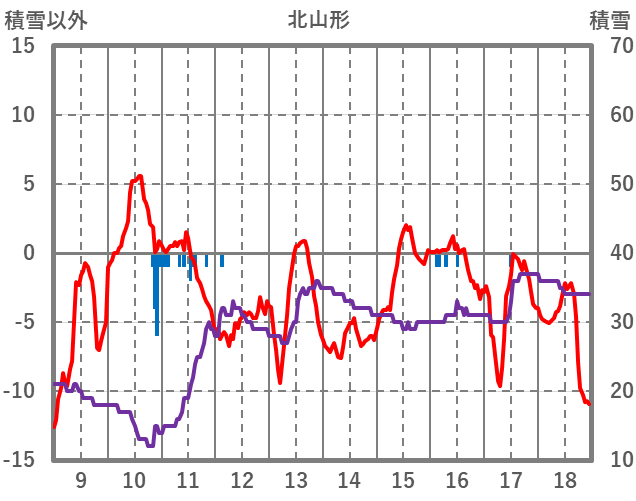 | 日 | 時 | 気温 | 降水 | 風向/風速 | 日照 | 積雪 | 降雪 |