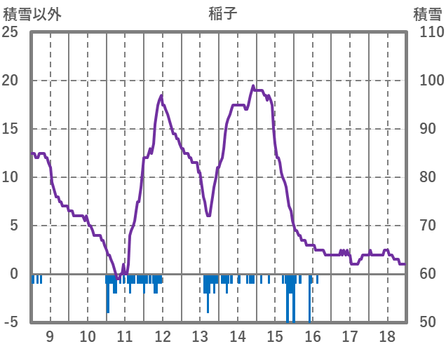 | 日 | 時 | 気温 | 降水 | 風向/風速 | 日照 | 積雪 | 降雪 |