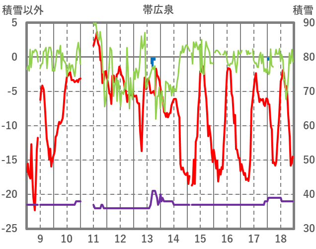 | 日 | 時 | 気温 | 降水 | 風向/風速 | 日照 | 積雪 | 降雪 |