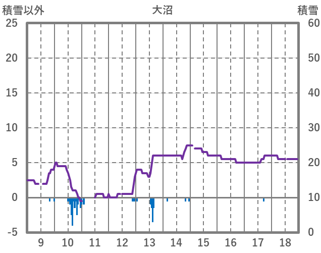 | 日 | 時 | 気温 | 降水 | 風向/風速 | 日照 | 積雪 | 降雪 |