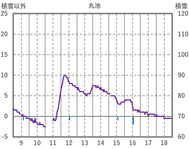 | 日 | 時 | 気温 | 降水 | 風向/風速 | 日照 | 積雪 | 降雪 |