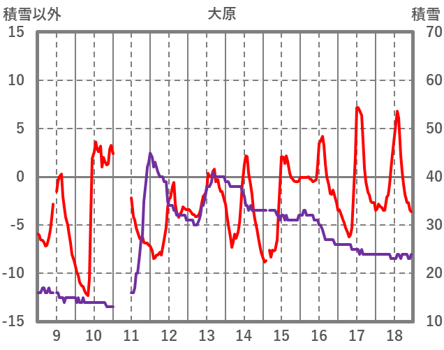 | 日 | 時 | 気温 | 降水 | 風向/風速 | 日照 | 積雪 | 降雪 |