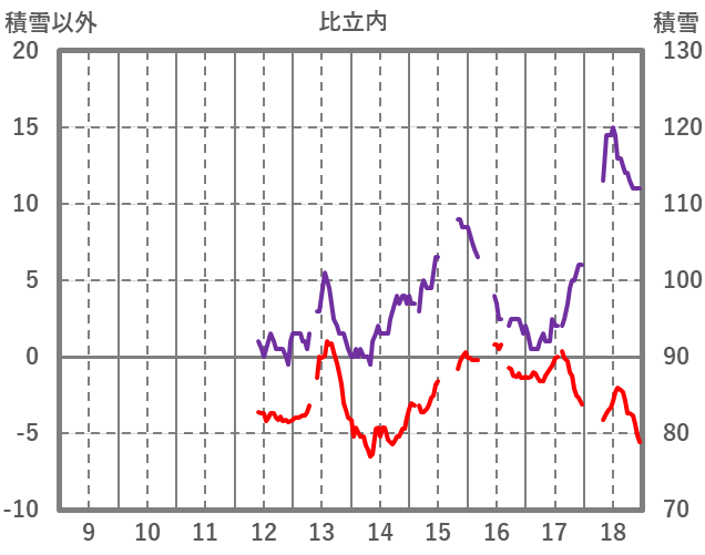 | 日 | 時 | 気温 | 降水 | 風向/風速 | 日照 | 積雪 | 降雪 |