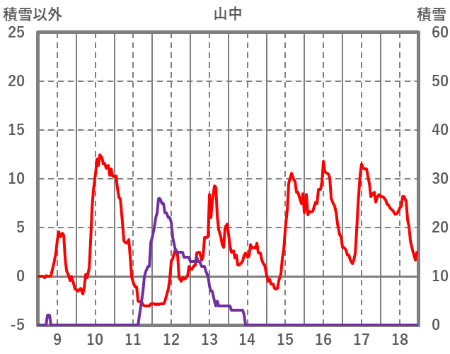 | 日 | 時 | 気温 | 降水 | 風向/風速 | 日照 | 積雪 | 降雪 |