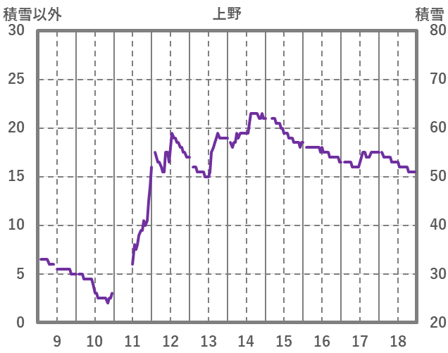 | 日 | 時 | 気温 | 降水 | 風向/風速 | 日照 | 積雪 | 降雪 |