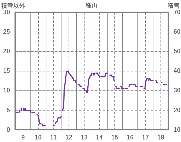 | 日 | 時 | 気温 | 降水 | 風向/風速 | 日照 | 積雪 | 降雪 |