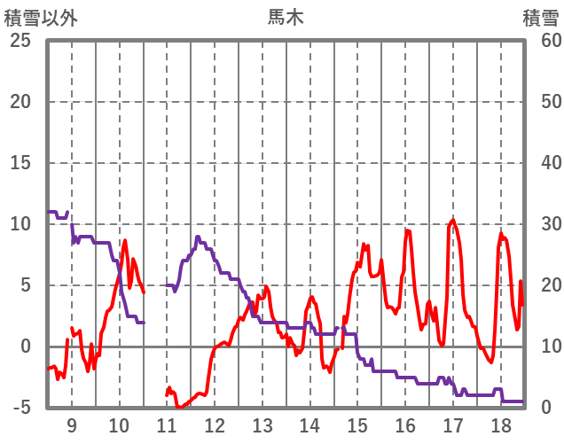 | 日 | 時 | 気温 | 降水 | 風向/風速 | 日照 | 積雪 | 降雪 |
