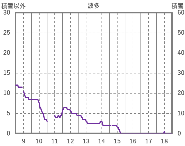 | 日 | 時 | 気温 | 降水 | 風向/風速 | 日照 | 積雪 | 降雪 |