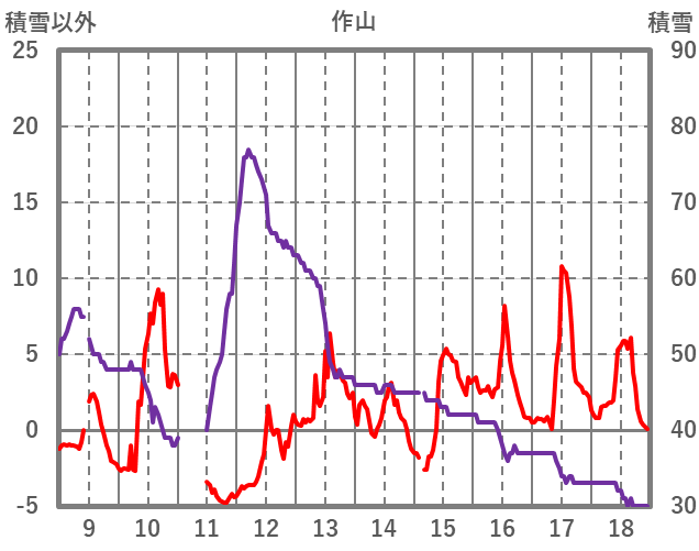 | 日 | 時 | 気温 | 降水 | 風向/風速 | 日照 | 積雪 | 降雪 |