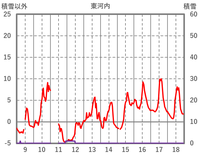| 日 | 時 | 気温 | 降水 | 風向/風速 | 日照 | 積雪 | 降雪 |