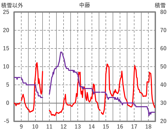 | 日 | 時 | 気温 | 降水 | 風向/風速 | 日照 | 積雪 | 降雪 |
