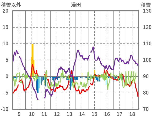 | 日 | 時 | 気温 | 降水 | 風向/風速 | 日照 | 積雪 | 降雪 |
