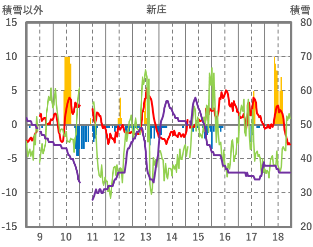 | 日 | 時 | 気温 | 降水 | 風向/風速 | 日照 | 積雪 | 降雪 |