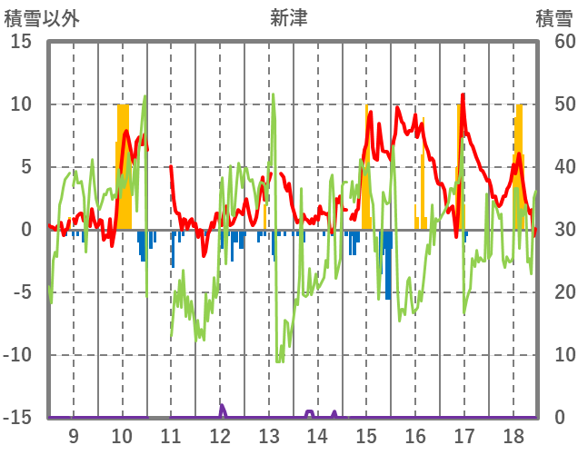| 日 | 時 | 気温 | 降水 | 風向/風速 | 日照 | 積雪 | 降雪 |