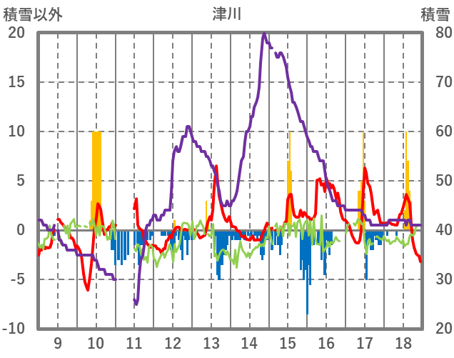 | 日 | 時 | 気温 | 降水 | 風向/風速 | 日照 | 積雪 | 降雪 |
