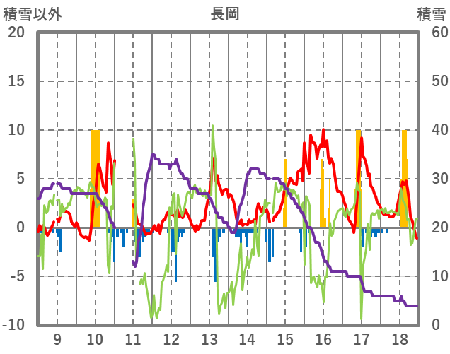 | 日 | 時 | 気温 | 降水 | 風向/風速 | 日照 | 積雪 | 降雪 |