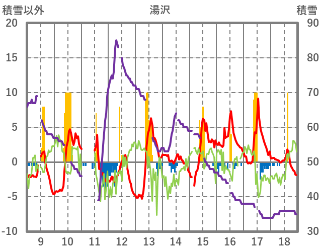 | 日 | 時 | 気温 | 降水 | 風向/風速 | 日照 | 積雪 | 降雪 |