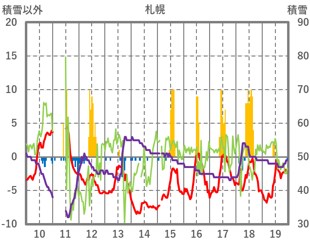 | 日 | 時 | 気温 | 降水 | 風向/風速 | 日照 | 積雪 | 降雪 |