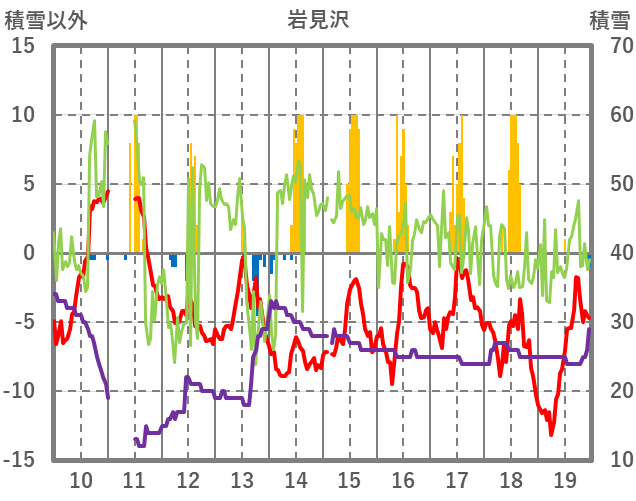 | 日 | 時 | 気温 | 降水 | 風向/風速 | 日照 | 積雪 | 降雪 |