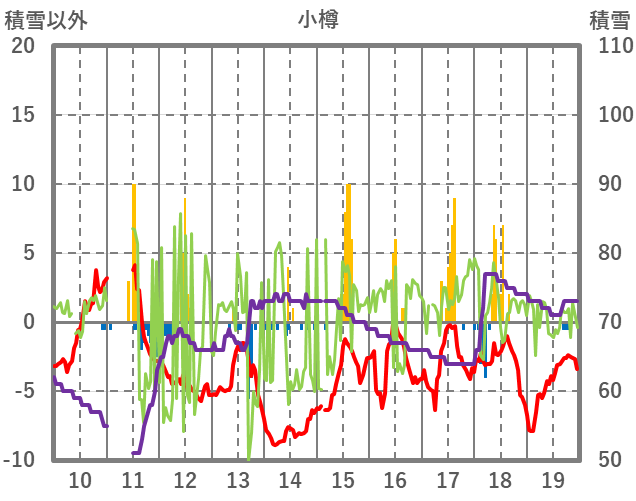 | 日 | 時 | 気温 | 降水 | 風向/風速 | 日照 | 積雪 | 降雪 |