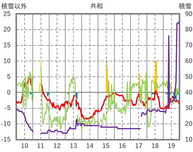 | 日 | 時 | 気温 | 降水 | 風向/風速 | 日照 | 積雪 | 降雪 |