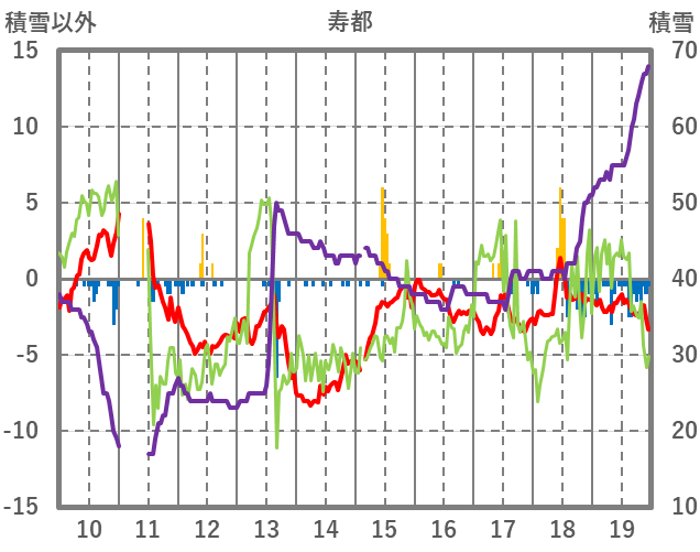 | 日 | 時 | 気温 | 降水 | 風向/風速 | 日照 | 積雪 | 降雪 |