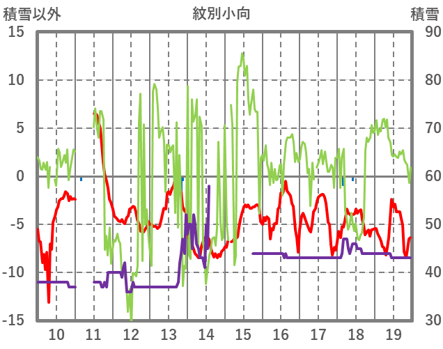 | 日 | 時 | 気温 | 降水 | 風向/風速 | 日照 | 積雪 | 降雪 |