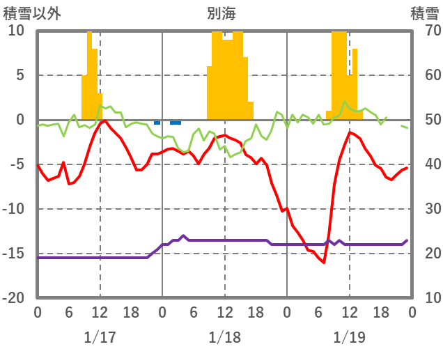 | 日 | 時 | 気温 | 降水 | 風向/風速 | 日照 | 積雪 | 降雪 |