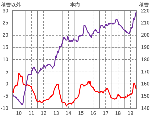 | 日 | 時 | 気温 | 降水 | 風向/風速 | 日照 | 積雪 | 降雪 |