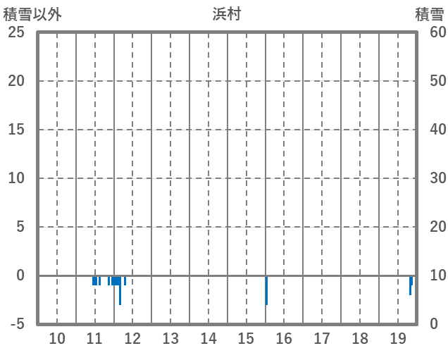 | 日 | 時 | 気温 | 降水 | 風向/風速 | 日照 | 積雪 | 降雪 |