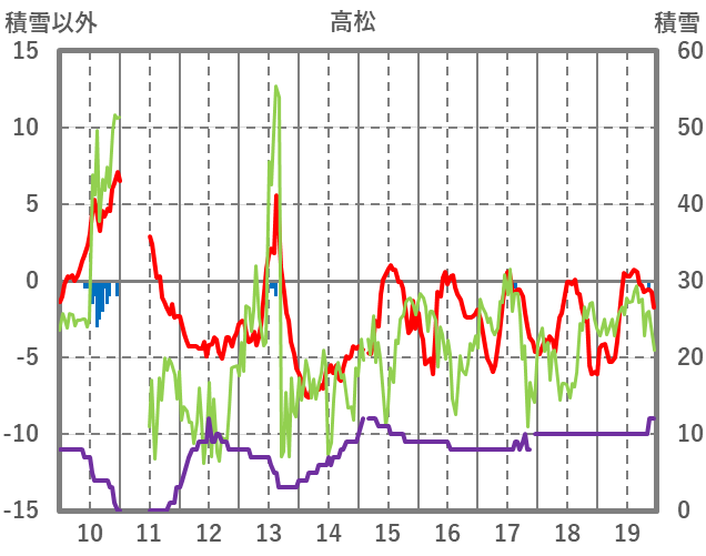 | 日 | 時 | 気温 | 降水 | 風向/風速 | 日照 | 積雪 | 降雪 |