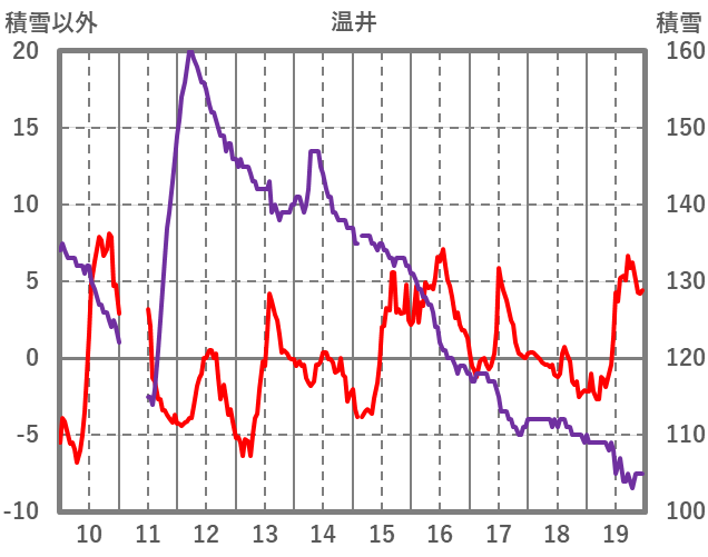 | 日 | 時 | 気温 | 降水 | 風向/風速 | 日照 | 積雪 | 降雪 |