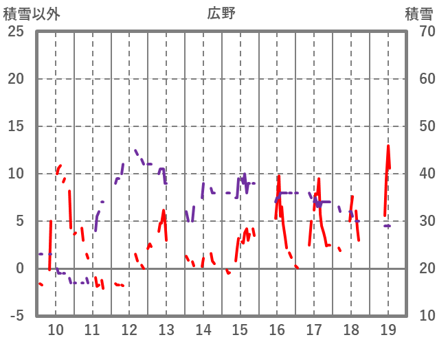 | 日 | 時 | 気温 | 降水 | 風向/風速 | 日照 | 積雪 | 降雪 |