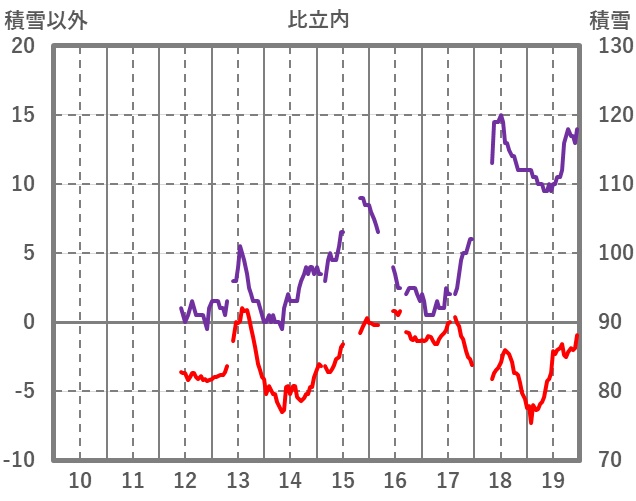 | 日 | 時 | 気温 | 降水 | 風向/風速 | 日照 | 積雪 | 降雪 |