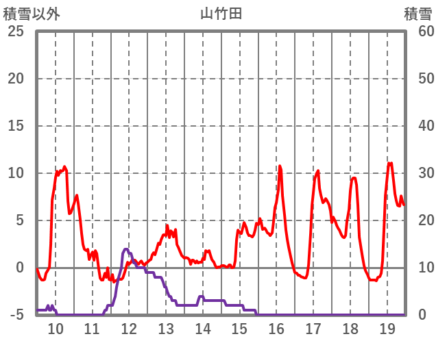| 日 | 時 | 気温 | 降水 | 風向/風速 | 日照 | 積雪 | 降雪 |