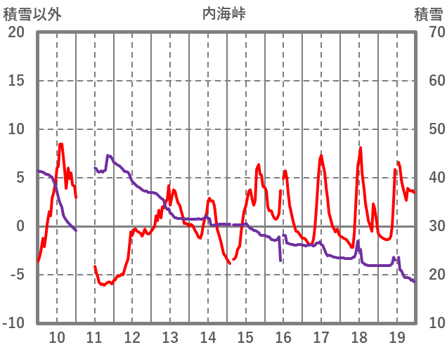 | 日 | 時 | 気温 | 降水 | 風向/風速 | 日照 | 積雪 | 降雪 |