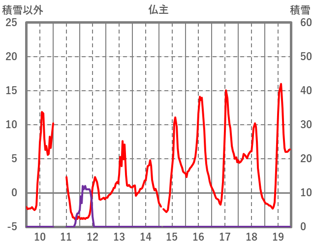 | 日 | 時 | 気温 | 降水 | 風向/風速 | 日照 | 積雪 | 降雪 |