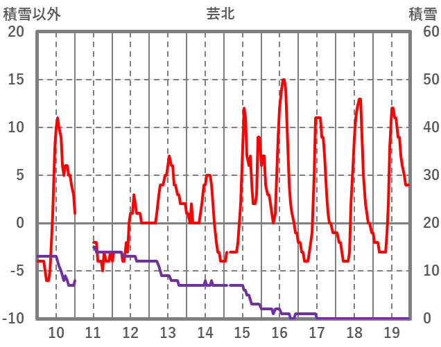 | 日 | 時 | 気温 | 降水 | 風向/風速 | 日照 | 積雪 | 降雪 |
