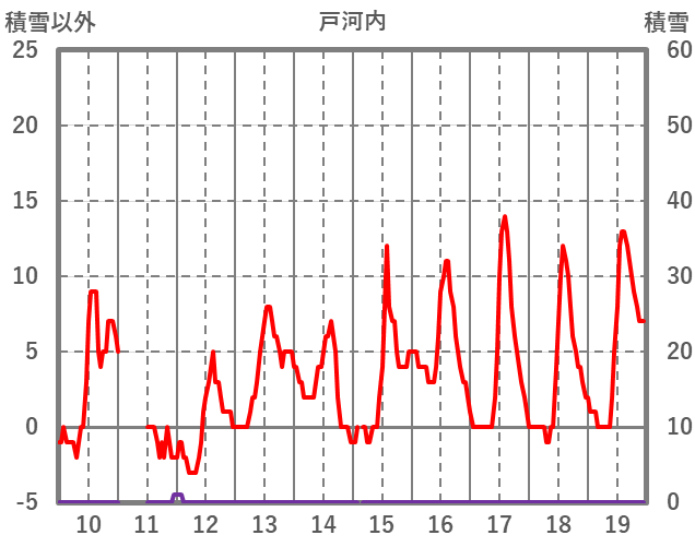 | 日 | 時 | 気温 | 降水 | 風向/風速 | 日照 | 積雪 | 降雪 |