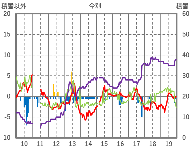| 日 | 時 | 気温 | 降水 | 風向/風速 | 日照 | 積雪 | 降雪 |