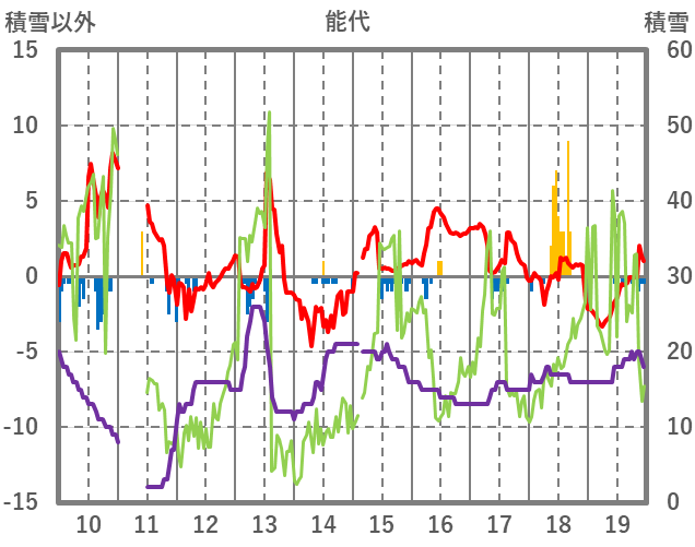 | 日 | 時 | 気温 | 降水 | 風向/風速 | 日照 | 積雪 | 降雪 |