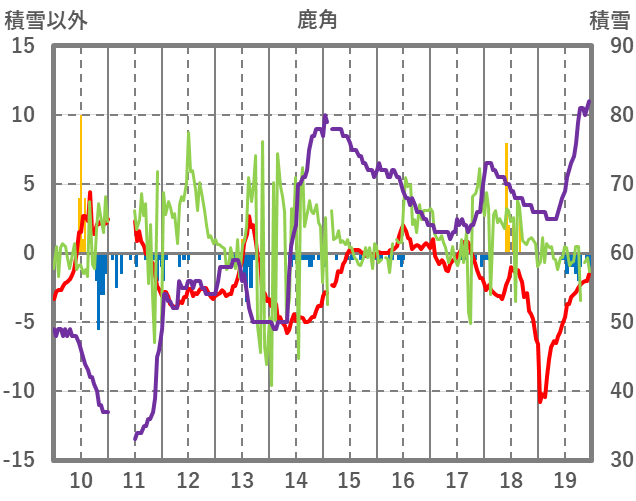 | 日 | 時 | 気温 | 降水 | 風向/風速 | 日照 | 積雪 | 降雪 |
